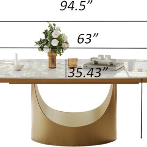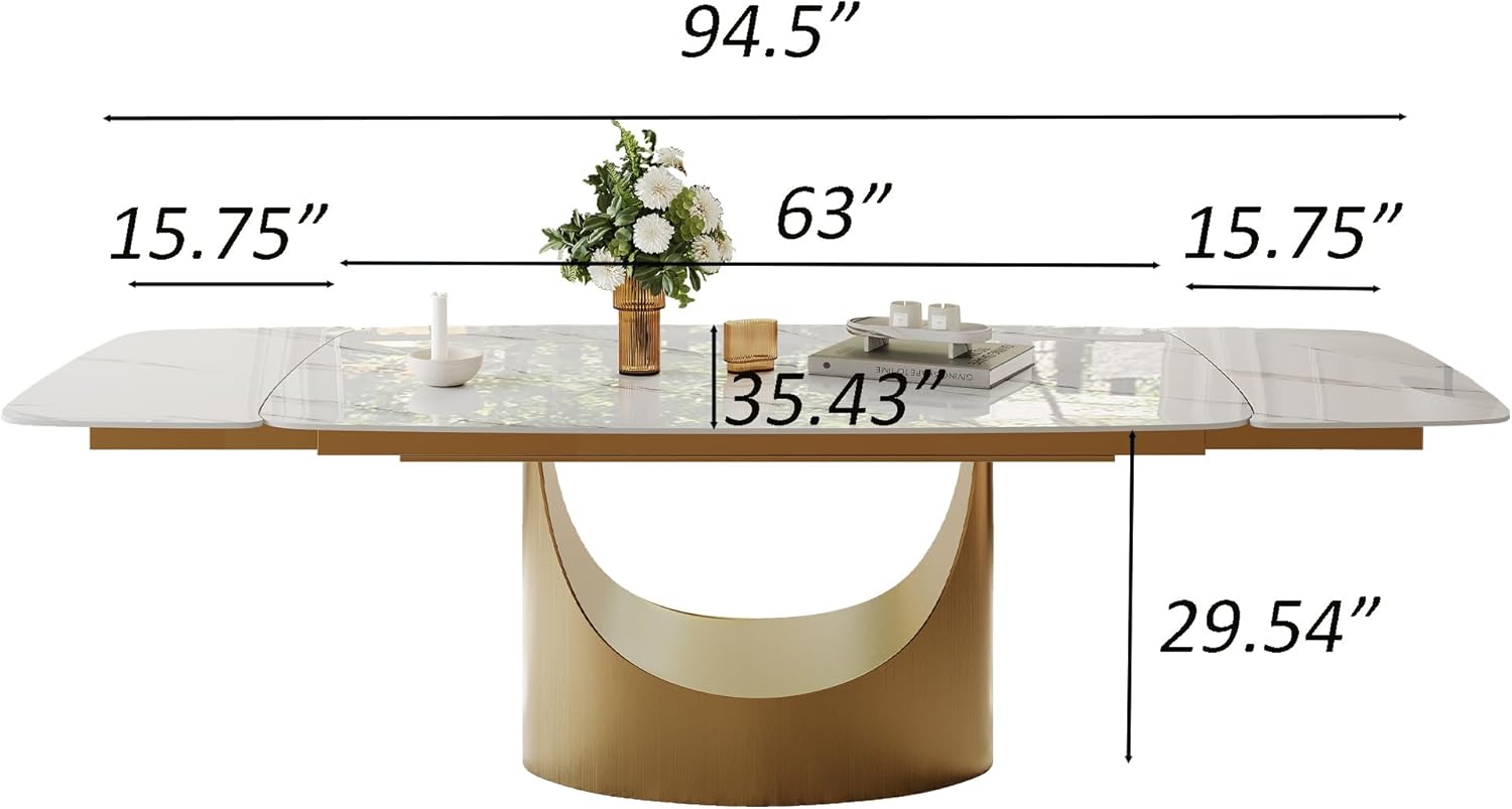 Modern Extendable Dining Room Table – 63″ to 94.5″ Extendable Dining Room Table for 6-12, White Sintered Stone Top with Golden Metal Base, Easy Assembly (Kitchen Table Only)