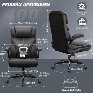 Office Chair, Ergonomic Big and Tall Computer Desk Chairs, Executive Breathable Leather Chair with Adjustable Flip-up Armrests, Lumbar Support Swivel PC Chair with Rocking Function