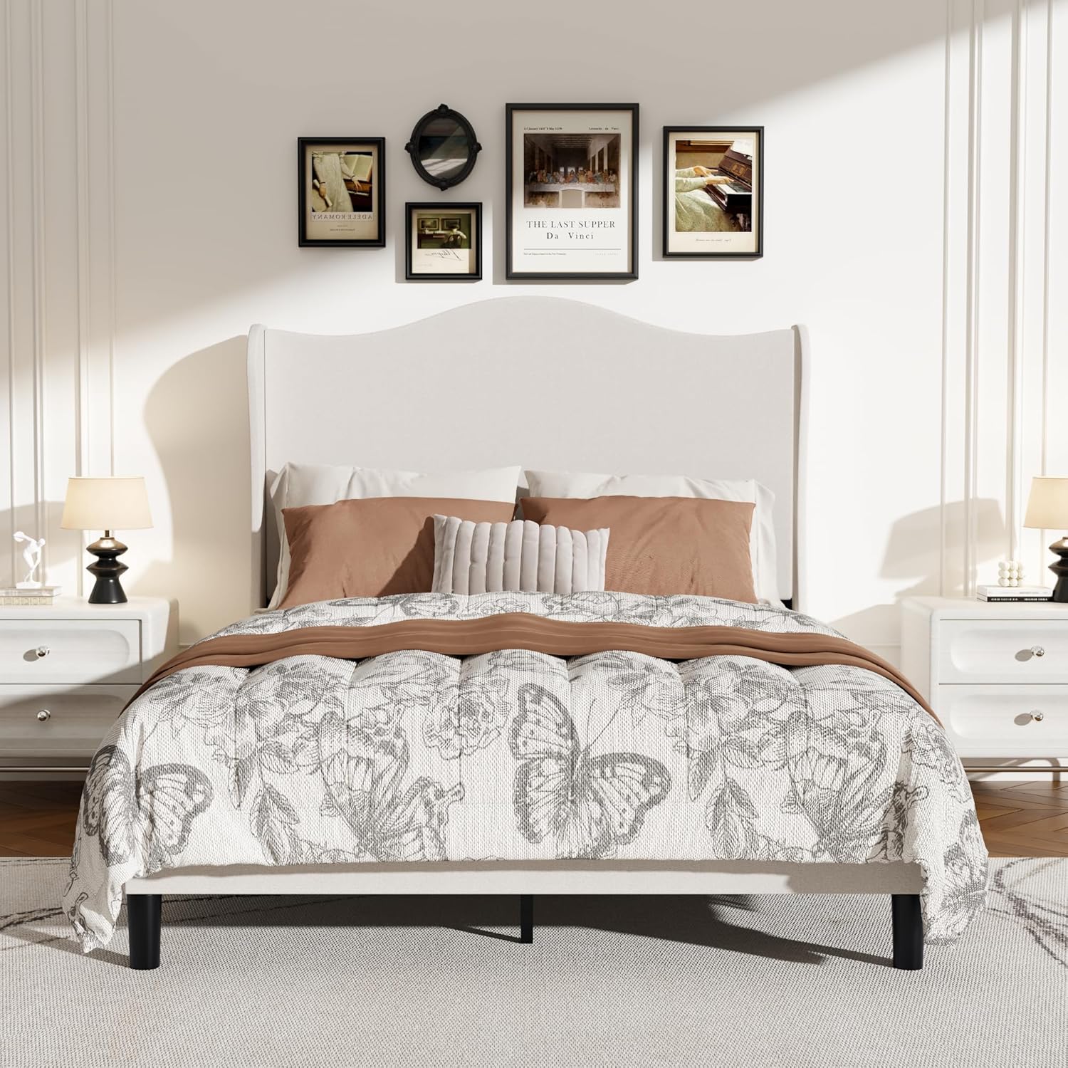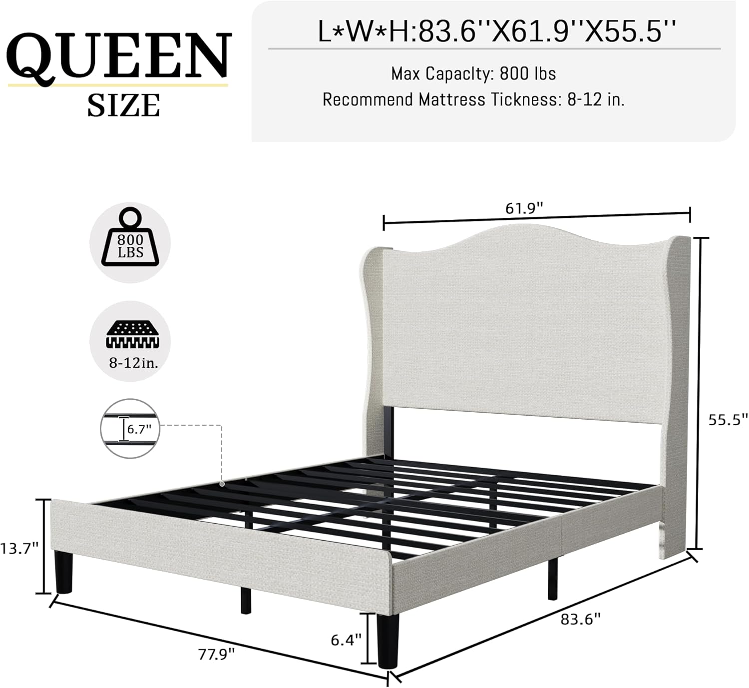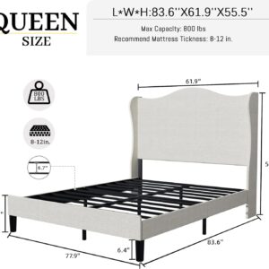 - 【High-back design provides comfortable support and a snug fit】The 55.5″ tall wingback headboard features a slightly curved shape that cradles your shoulders and neck, making it ideal for reading or watching TV in bed.is a very comfortable choice.