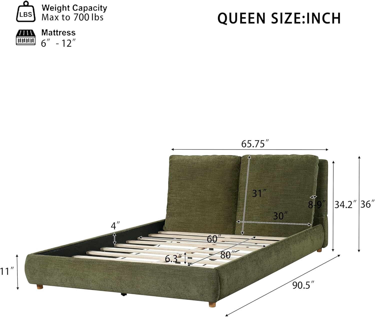 • 🌟 Unique Design: This upholstered platform bed has a unique design concept and a simple yet elegant style. It can add irresistible charm to your bedroom space and is suitable for different styles of interiors.The headboard is designed to be filled with soft foam and upholstered with two removable pillows, providing you with more comfortable support. modern minimalist design, Sleek lines and simple silhouette ideal for contemporary bedrooms.
